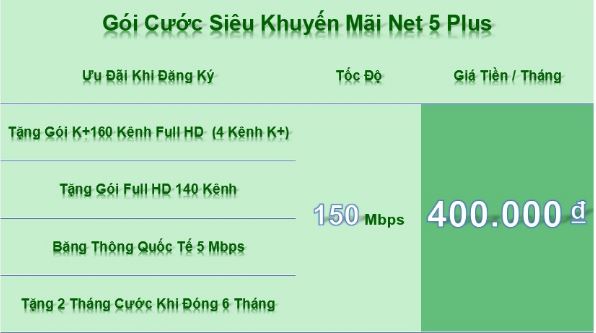 GÓI CƯỚC SIÊU KHUYẾN MÃI NET 5 PLUS & NET 7